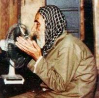 عکس مربوط به آیت الله جواد تهرانی در حال خواندن نماز در یکی از جبهههای جنگ تحمیلی است.