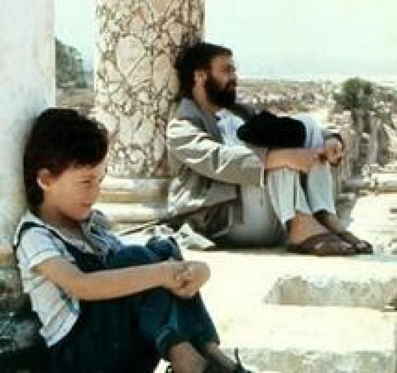 این تصویر را که شهید دکتر مصطفی چمران در سواحل لبنان انداخته است، متعلق به مرحوم سید احمد خمینی و حجت الاسلام سید حسن خمینی است. سید حسن در این عکس فقط 5 سال داشته و با پدرش که برای دیدار با امام موسی صدر به لبنان رفته بود، همراه شده بود.
