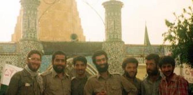 نفر سوم از چپ: سردار شهید حاج علی رضا موحد دانش (بنیان گذار و فرمانده ی لشکر 10 سید الشهدا (صلوات الله علیه) که در مرداد ماه 1362 خلعت شهادت پوشید)