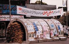 به گزارش تا شهدا، درسال های دفاع مقدس، انتخابات دو دوره ی مجلس شورای اسلامی برگزار شد؛ دوره دوم و دوره ی سوم. عکس زیر در سال 1366 و طی ایام تبلیغات انتخاباتی جهت سومین دوره ی مجلس برداشته شده است. در نیمه ی اول سال 1366 ، موشک باران شهر تهران توسط رژیم بعث عراق، به اوج خود رسید. به همین جهت پناهگاه های بتونی متعددی در سطح شهر و خصوصا میادین اصلی احداث شد که در عکس زیر، یک نمونه از آن پناهگاه ها را می بینید.