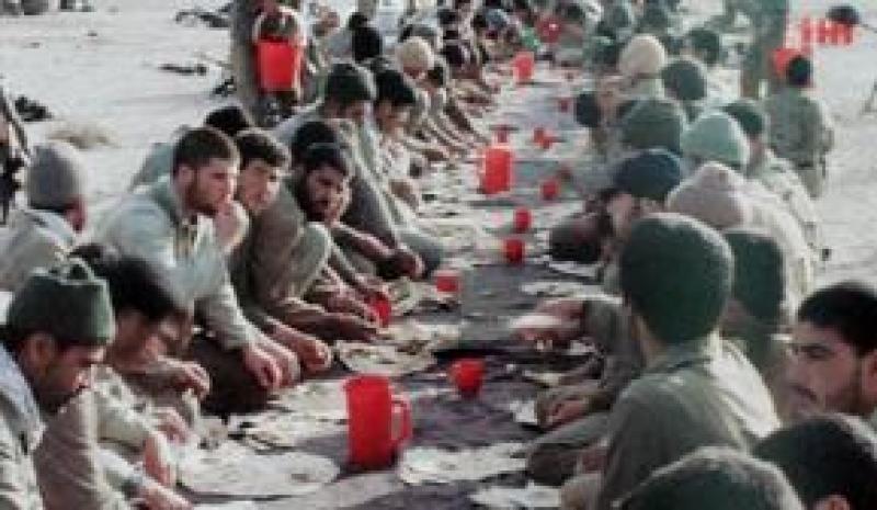 <p style="text-align: justify;"><span>عکسی که می بینید،در جاده اهواز- آبادان (موقعیت شهید قربانعلی عرب) گرفته شده است و جمعی از نیروهای لشکر 14 امام حسین گرد سفره ای ساده و تک خورشت نشان می دهد.</span></p>