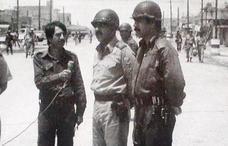 تا شهدا - عکسی که می بینید، یقینا برای اهالی سن و سال دار خرمشهر، آشنا است. این جا یکی از خیابان های اصلی خرمشهر، موسوم به "کوی طالقانی" است. عکس در بهار سال 1361 گرفته شده است و افراد موجود در عکس، اشغالگران بعثی هستند. عکاس ارتش بعث، از بازدید یکی از فرماندهان بعثی از شهر، عکسی به یادگار گرفته است. افسر بعثی، در حال مصاحبه است و لابد چنین می گوید: " من الان در شهر آزاد شده "محمره" هستم. تاکید می کنم که آمده ایم تا بمانیم"