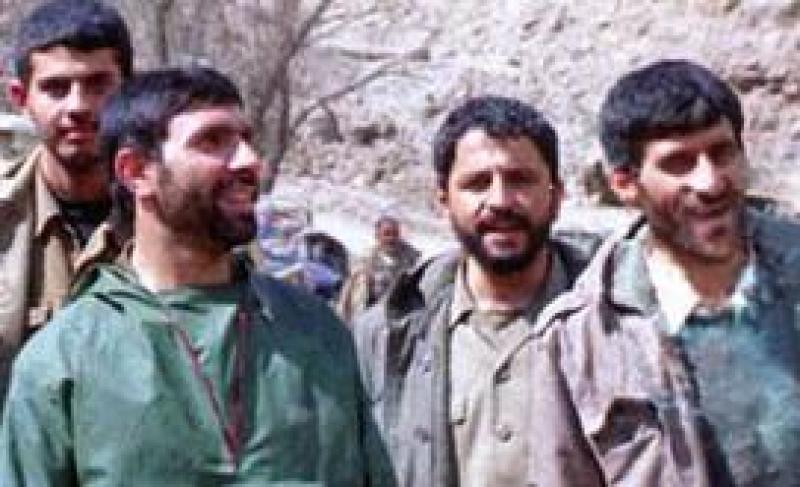 تا شهدا - سردار "اسماعیل احمدی مقدم" فرمانده فعلی نیروی انتظامی جمهوری اسلامی، از رزمندگان استخوان خرد کرده سال های دفاع مقدس است که در جبهه های مختلف داخلی و خارجی، برای دفاع از دین و انقلاب اسلامی، جانبازی های فراوانی را در کارنامه جهادی خود ثبت نموده است. عکسی که می بینید، یکی از یادگاری های سردار احمدی مقدم در سال های جنگ است. این عکس در سال 1366 و در جبهه غرب گرفته شده است، "اسماعیل احمدی مقدم"را در سن 26 سالگی نشان می دهد(نفر سوم از راست). در کنار او، سردار شهید"غلامرضا صالحی"(نفر دوم از راست) جانشین فرماندهی لشکر27 محمدرسول الله(ص) و شهید "علی صیاد شیرازی" فرمانده وقت نیروی زمینی ارتش جمهوری اسلامی دیده می شود.