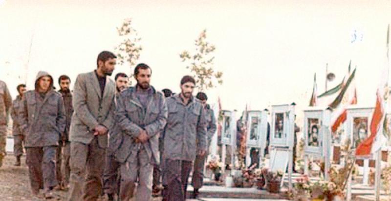 شهید باکری در حال زیارت گلزار شهدا