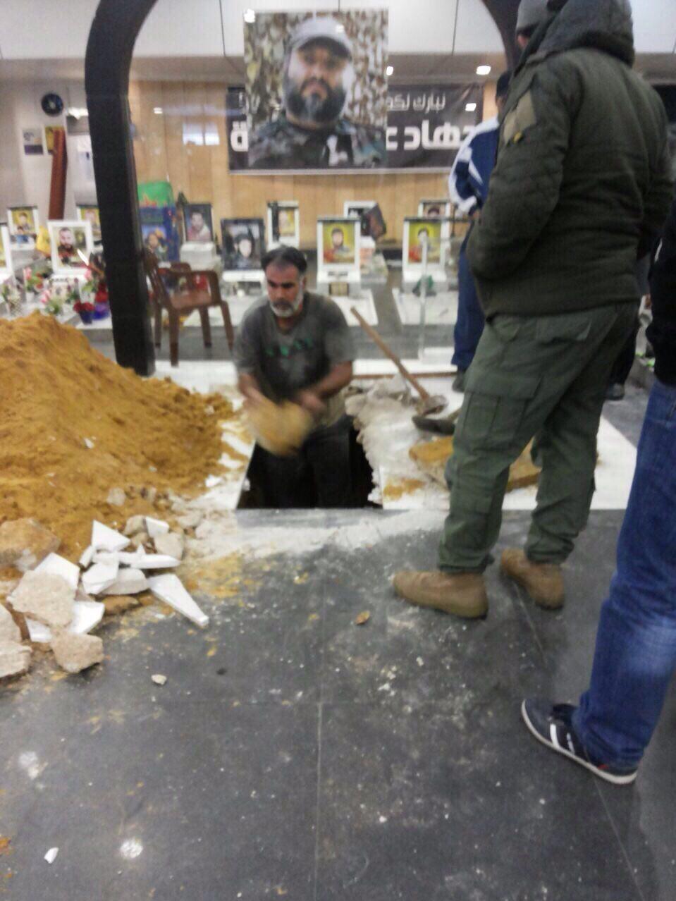 نخستین تصویر از آماده سازی محل دفن شهید جهاد مغنیه در کنار مزار پدر شهیدش حاج عماد مغنیه.