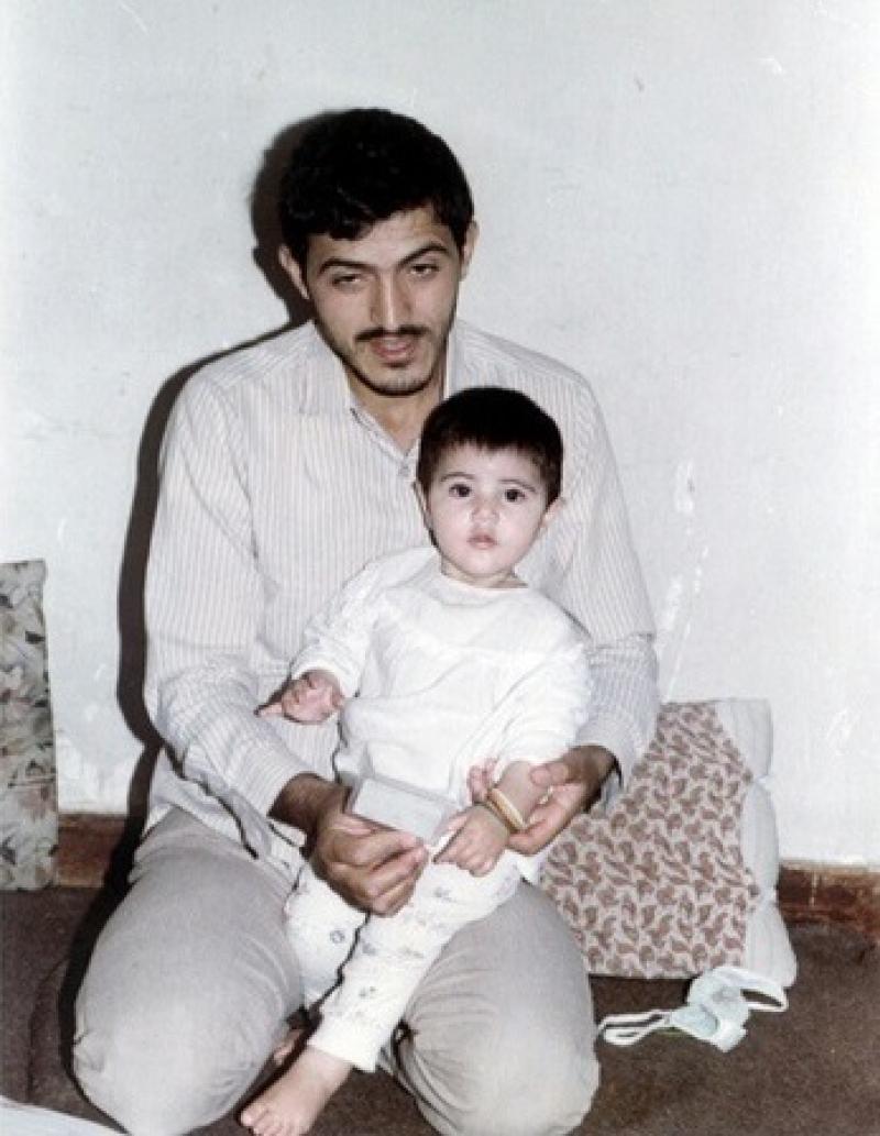 فرزند شهید زینالدین در بغل پدر شهیدش
