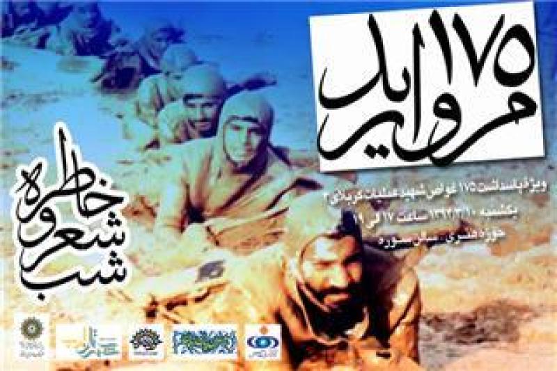 تا شهدا - راسم پاسداشت 175 غواص شهید عصر روز گذشته، دهم خردادماه به همت حوزه هنری، خبرگزاری فارس، فرهنگسرای اندیشه، سایت شاعران فارسیزبان و موسسه شهرستان ادب در سالن سوره حوزه هنری سازمان تبلیغات اسلامی با حضور خانواده شهدای غواص و شاعران و اساتید و فعالان این عرصه برگزار شد.