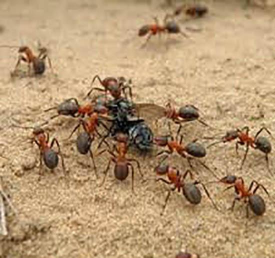 به زمین که نگاه کردیم،چشممان از تعجب باز ماند و علت خارش بدنمان را فهمیدیم.تعداد زیادی مورچه با رنگ های زرد و سیاه زیر پایمان را پوشانده بود و مثل مور و ملخ از تن و لباسمان بالا می رفتند
