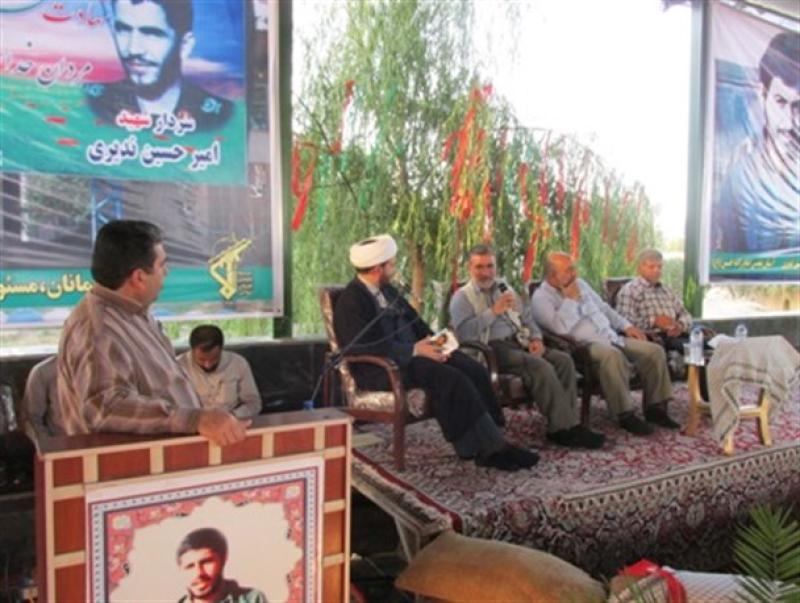 <div>مراسم یادبود سردار شهید امیر حسین ندیری معاون شهید مهدی زین الدین با عنوان" آبروی محله" در روستای محمودآباد ساوه با حضور همرزمانش و مسئولین برگزار شد.</div>