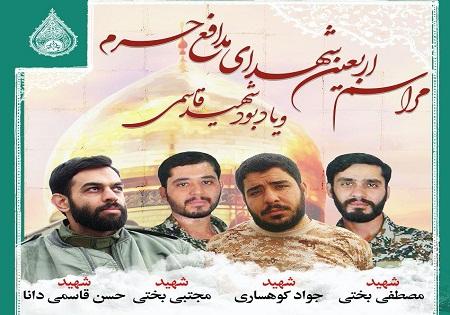 تا شهدا: مراسم چهلمین روز شهادت شهیدان "مصطفی و مجتبی بختی" و "جواد کوهساری" و یادبود شهید "حسن قاسمی دانا" از شهدای مدافع حرم برگزار میشود.