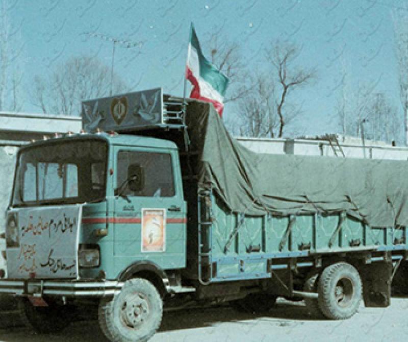 تصویری که پیش رو دارید، در اوایل دهه ی 1360 شمسی برداشته شده و کمک های مردم «صائین قلعه» به جبهه های جنگ را به ثبت رسانده است: