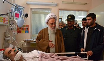 عیادت آیت الله مجتهد شبستری از جانباز دفاع مقدس