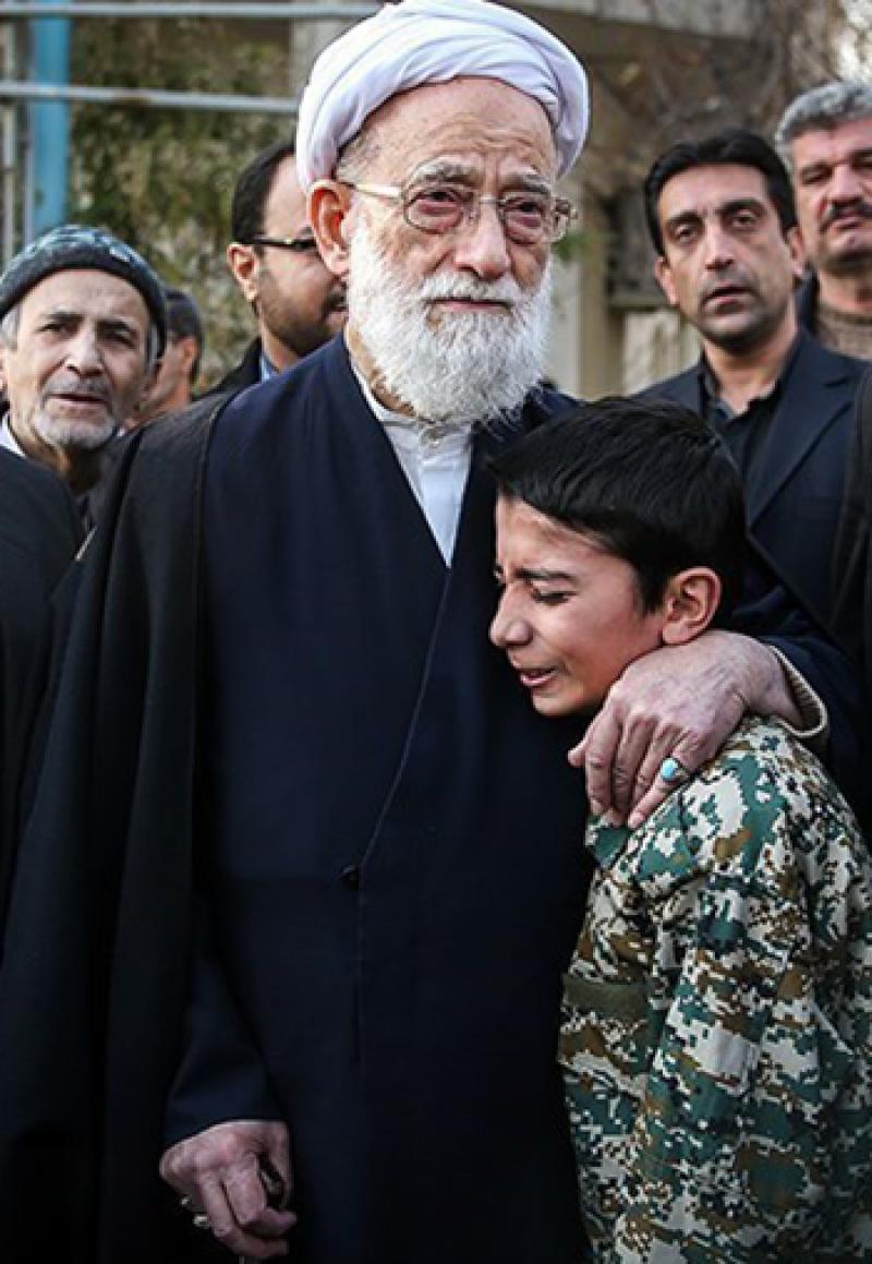 آیت الله امامی کاشانی و فرزند شهید فرامرزی در مراسم تشییع پیکر مطهر شهید