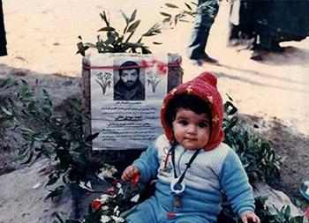 تصویر زیر فرزند وی را نشان میدهد که دل هر آزادهای را به درد میآورد و ذهن انسان را می برد به روضه های کربلایی که "یا أبتاهُ مَنْ ذَا الَّذی أَیتمنی علی صِغَر سِنّی؟"