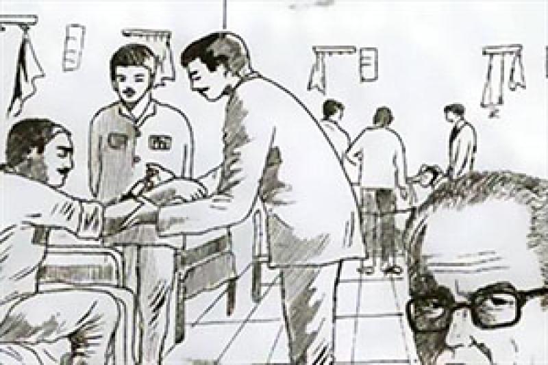 چشمان مان بسته بود و نمی دانستیم کجا می رویم و همین طور کشان کشان ما را که از زیر چشم بندمان نگاه می کردیم وارد سالنی کردند که بیشتر شیبه راه رو بیمارستان بود و در گوشه ی یکی از سالن ها ما را بخط روی زمین نشاندند تا نوبت مان شود.