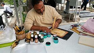 برام جالب شد از یک خانوم که کاغذ خطاطی دستشون بود پرسیدم، گفت ایشون با هنرشون برای رفقاشون خیرات می فرستند، خیراتی آمیخته شده با هنر دست، ایستادم و به دستانش خیره شدم، با مهربانی از هر فرد سوال میکرد که چه چیزی بنویسم، و هر فرد اسم ائمه و یا شعری را میگفت.