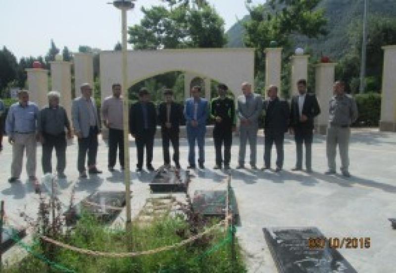 جانباز سرافراز سيد مسعود طباطبايي با حضور در گلزار شهدا بهشت فاطمه(س) گلوگاه ضمن اداي احترام به مقام شامخ شهيدان به ياد 9 شهيد گمنام آرميده در اين گلزار، درخت نهال غرس كرد.