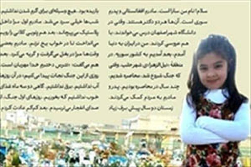 در این نامه آمده است: سلام! نام من سارا است. مادرم افغانستانی و پدرم سوری است. آنها هر 2 پزشک هستند. وقتی در دانشگاه شهر اصفهان درس میخواندند، با هم عروسی کردند. من در ایران به دنیا آمدم، بعد آمدیم به کشور سوریه.