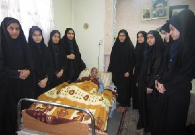 <p>دانش آموزان مدرسه شاهد کوثر رباط کریم بعد از اتمام امتحانات خود به عیادت مادر شهید معظم محسن بهرامی که در بستر بیماری به سر می برد رفتند.</p>