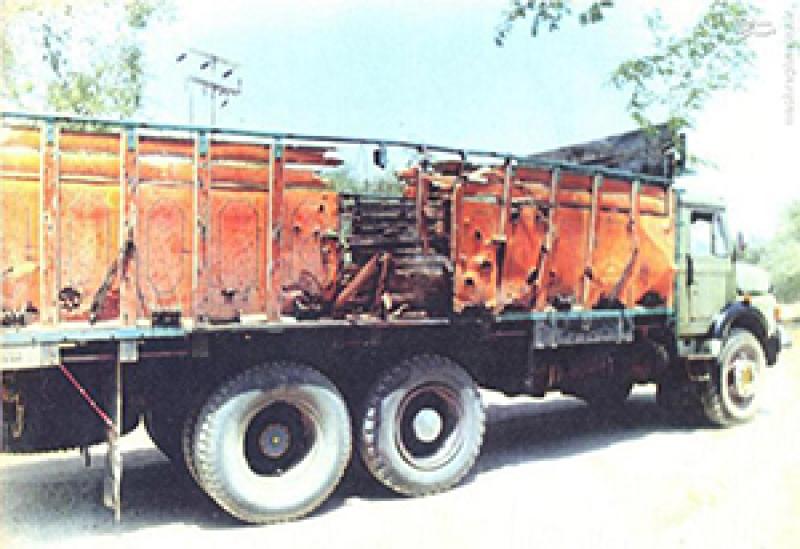 بچه ها سوار شدند و من هم با حاج خادم هنوز حرفم تمام نشده بود که صدای انفجار شنیدم. هر دو برگشتیم به سمت کامیون که یه دفعه خشکمون زد... دیدیم عقب کامیون سوراخ شده و صدای ناله بچه ها میاد.... چند لحظه هر دوی ما توان هیچگونه حرکتی نداشتیم...