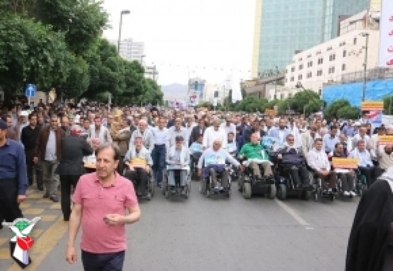 در این راهپیمایی، ایثارگران به ویژه جانبازان قطع نخاعی مرکز توانبخشی امام خمینی (ره) مشهد مقدس با حضور خود از آرمانهای مقدس مردم فلسطین حمایت کردند.