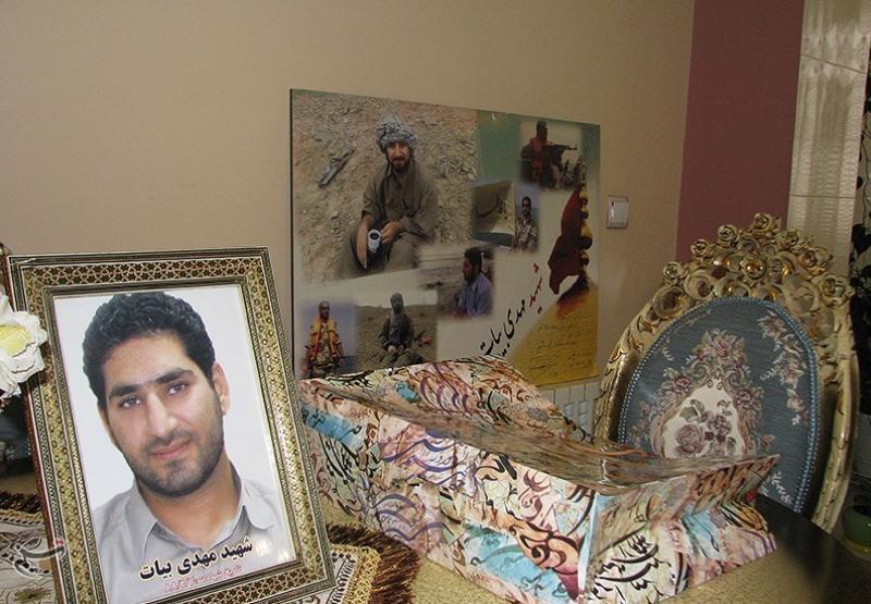 مادر شهید بیات با اشاره به نحوه شهادت فرزندش گفت: جریانی که مهدی در آن به شهادت رسید یک عملیات در درگیری با گروهک ریگی بود. آن موقع هنوز ریگی دستگیر نشده بود. تیر به چشمش اصابت کرد، در جمجمه چرخیده و از گلویش بیرون آمد. لباسهایش همه خون آلود بود و من هنوز آنها را نگه داشتهام. هیچ کدام از این لباسها در طی این سالها بو نگرفته و مشخص است که متعلق به یک شهید است. به خاطر وجود خون شهید بر روی لباس است که بو نگرفته است. وقتی تیر خورده بود به حالت سجده روی زمین افتاده و به شهادت رسیده بود.
