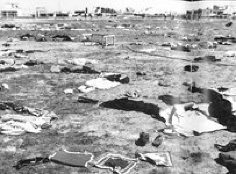 اما ناگاه نفیری شوم مصلای نماز جمعه را در هم میریزد. فریادهای تکبیر خاموش میشود و صدای یا زهرا (س) و یا حسین (ع) بلند میشود. راکتهای شلیک شده از سوی هواپیماهای عراقی به ضلع شمالی استادیوم، مصلای نماز جمعه را به آتش میکشد. به راستی مگر نماز جمعه را هم میشود، بمباران کرد؟ دود و آتش که فرو نشست استادیوم ورزشی آزادی، کربلایی شده بود. پیکر پاره پاره و غرقه به خون زنان و مردان و حتی خردسالانی که آمده بودند، تا مشق نماز و مبارزه بیاموزند بر روی چمنها که حالا دیگر رنگش به سرخی میزد، در خلسهای ابدی خوابیده بود.