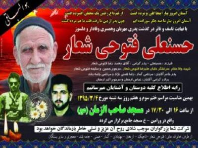 پدر شهید سرلشگر خلبان علیرضا فتوحی شعار پس از سالها مقاومت و صبوری به فرزند شهیدش پیوست.