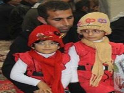 2 دختر شهید مدافع حرم در کنار تابوت پدر
