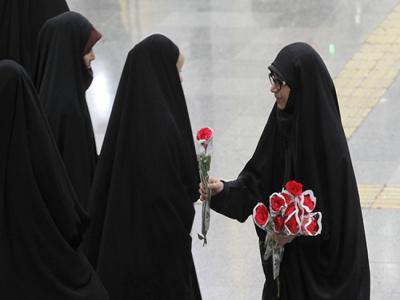 (تصاویر) یک شاخه گل هدیه به بانوان محجبه