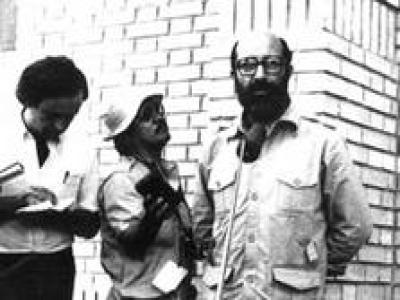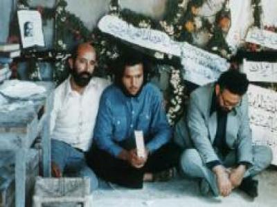 مصطفی چمران، ابراهیم یزدی و احسان شریعتی بر سر مزار دکتر