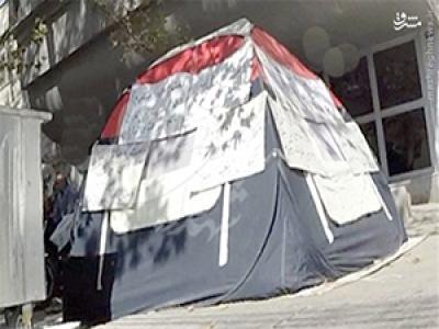 جانباز ۵۰ درصد مقابل بنیاد شهید چادر زد