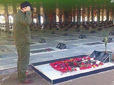 آن چه پیش رو دارید، نمایی است که از ادای احترامِ پسرِ سردار «علی محمدقربانی» به مزار