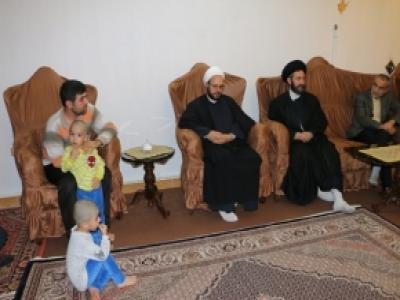 آیت الله اعرافی رئیس جامعه المصطفی العالمیه در منزل شهدای مدافع حرم افغانستانی از گروه فاتح