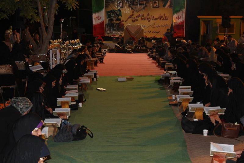 در این مراسم نورانی حاضرین یاد و خاطره شهدا را گرامی داشته و با تلاوت آیات روح بخش کلام وحی در فضائی ملکوتی ثواب آن را به روح مطهر شهدای والامقام هدیه کردند.