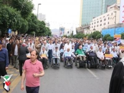 خانوادههای شاهد و ایثارگران دفاع مقدس با حضور در راهپیمایی روز قدس با آرمانهای شهدا و