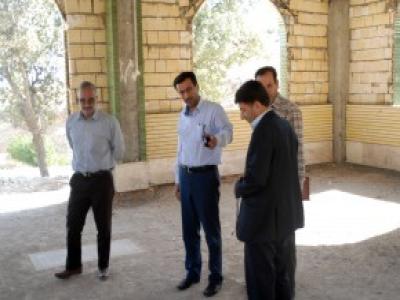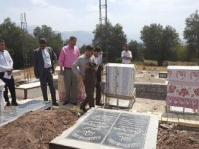 مدیرکل بنیاد استان زنجان به همراه چند تن از مسئولان از روند ساماندهی گلزار روستای تشویر از توابع