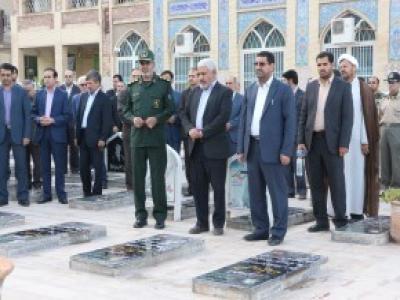 گلزار شهدای شهرستان چناران در مراسمی به یاد شهید آیت الله بهشتی و 72 یار شهیدش گلباران و