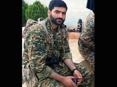اهتزاز پرچم «یا ابالفضل(ع)» به دست شهید بیضایی در سوریه